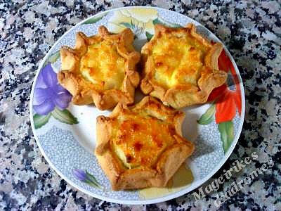 - Τα αλείφουμε με αυγό για να μην καεί η μυζήθρα στο ψήσιμο και τα ψήνουμε στον αέρα στους 180 βαθμούς μέχρι να ροδίσουν.