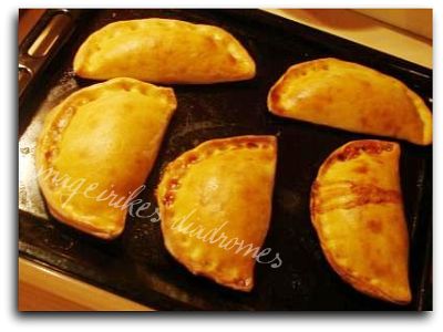 - Κλείνουμε σε σχήμα μισοφέγγαρου, πιέζουμε τις άκρες του να σφραγίσει και αλείφουμε με αβγό.