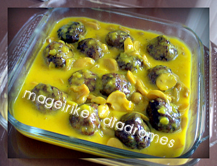 Μια παραλλαγή με κεφτεδάκια και στη σάλτσα αντί για μουστάρδα που έχει η πρωτότυπη συνταγή, έβαλα κρόκο Κοζάνης.