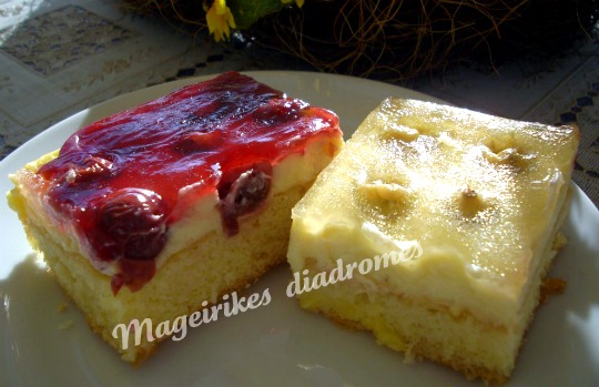 - Βαζουμε την κρεμα πανω στο ετοιμο παντεσπανι να πάει παντου και βαζουμε επανω τα φρουτα ομορφα στην σειρά και το βαζουμε στον ζεστο φουρνο για ακομα 15 με 20 λεπτα,στο 180ο αερας.