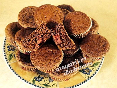 - Προσθετουμε το αλευρι, τη σοδα, το μπέικιν, το κακαο , ανακατευουμε και γεμιζουμε τα χαρτακια του κεϊκ μέσα στη μαφινιέρα.