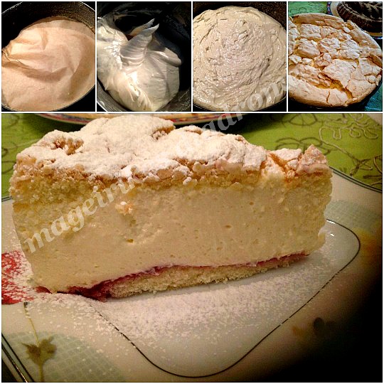 - Κανουμε το παντεσπάνι: Ανακατεύουμε το αλεύρι με το κορν Φλάουερ και το μπεικιν. Βάζουμε στο κάδο του μίξερ τα ασπράδια και τα χτυπάμε καλα πολυ καλα σε σφιχτή μαρέγκα. Σιγα σιγα ρίχνουμε την ζάχαρη και συνέχεια χτυπάμε μέχρι να αρχίσει να γυαλίζει η μαρέγκα. Σιγα σιγα ρίχνουμε έναν έναν τους κρόκους μέχρι να γίνει κρεμώδης και παχιά κρέμα. Ρίχνουμε προσεκτικά το αλεύρι και κατεβαζουμε την ταχύτητα του μίξερ ανακατεύουμε στο σιγανό.
