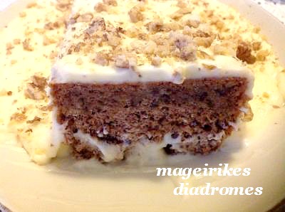 Ένα σιροπιαστό κέικ με κρέμα. Παραδοσιακή συνταγή από την Καρδίτσα που λέγεται και Σπάτουλα ή Πουτίγκα.