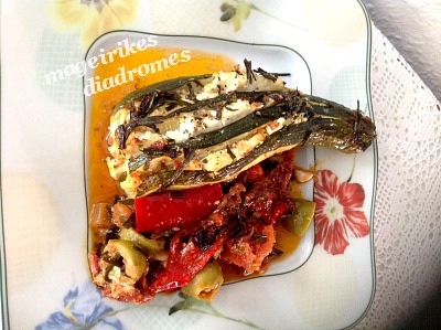 - Ανακατεύουμε λαδι, ρίγανη, θυμαρι σκόρδο και το βαζουμε επανω στα κολοκυθάκια.