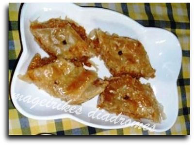 - Ραντίζουμε το τελευταίο φύλλο με λίγο νερό και χαράζουμε την πίτα μας σε μπακλαβαδωτά κομμάτια.