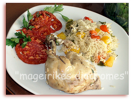 - Τέλος θα καλύψω το ρύζι με φέτες ντομάτας και θα το βάλω στο φούρνο στους 200ο για περίπου 40 λεπτά.
