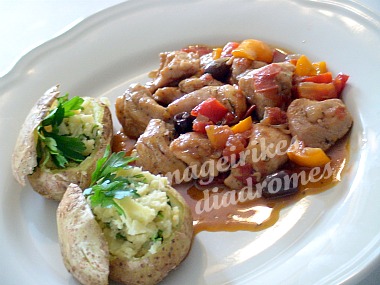 Κοτόπουλο με ελιές και πιπεριές