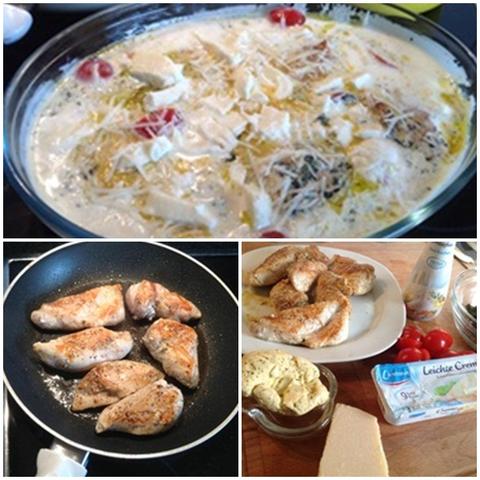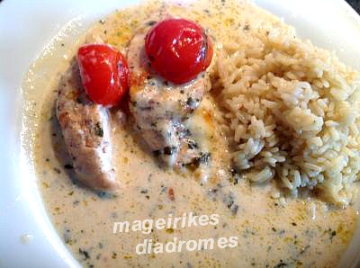 Κοτόπουλο με μοτσαρέλα και κρέμα βασιλικού