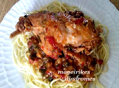 - Ανοίγουμε το καπάκι ,προσθέτουμε τον μαϊντανό ,αφήνουμε λίγα λεπτά και σβήνουμε. Σερβίρουμε με μακαρόνια ή ρύζι.