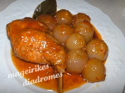 Κατά τον ίδιο τρόπο μαγειρεύεται και ο λαγός. Τα κρεμμύδια δεν πρέπει να λιώσουν αλλά να είναι ολόκληρα.