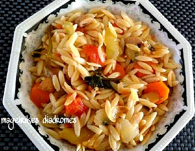 Η συνταγή από εδώ: http://www.alwayshungry.gr/2016/08/kritharoto-me-laxanika.html