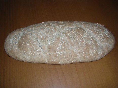 - Ψεκάζουμε με λίγο νεράκι την επιφάνεια και πασπαλίζουμε σουσάμι. Πατάμε ελαφρά να κολλήσει.