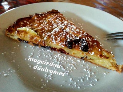 - Όταν το βγάλουμε, το πασπαλίζουμε με την Άχνη, σερβίρουμε ζεστό με παγωτό βανιλια..