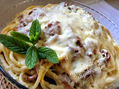 - Πασπαλίζουμε με την υπόλοιπη ποσότητα τυριών και βάζουμε το πυρέξ σε προθερμασμένο μέτριο φούρνο. Μόλις λιώσουν τα τυριά το φαγητό μας είναι έτοιμο.