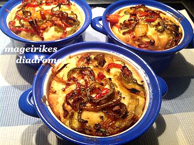 - Βαζουμε απο το μιγμα αυτο στα φορμάκια και επανω απο τις πιπεριες. Ψήνουμε για 25 λεπτα ανάλογα τον φουρνο σας ,μεχρι να ροδοκοκκινίσει η επιφάνεια και να εχει φουσκώσει αρκετα. Σερβιρουμε αμεσως γιατι ξεφουσκώνει και καθεται.