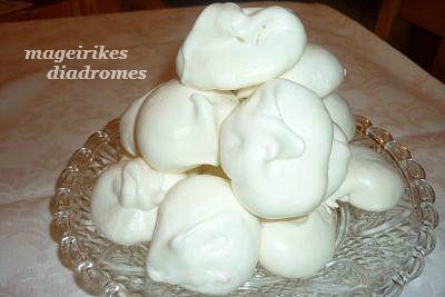 - Χτυπάμε σε μεταλλικό μπόλ τα ασπράδια ,ρίχνουμε σαν βροχή την ζάχαρη ,μέχρι να γίνει σφιχτή μαρέγκα, ρίχνουμε την άχνη και ανακατεύουμε με σπάτουλα απαλά και βάζουμε με το κουτάλι αραιά σε ταψί με λαδόκολλα κουταλιές.