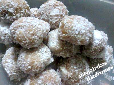 - Αφου πιουν το σιρόπι και κρυώσουν, τα κυλαμε σε μπόλικη καρύδα