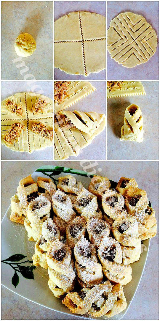 - Χωρίζουμε το κάθε φύλλο στα 4 και κόβουμε το κάθε κομμάτι σε 3 λωρίδες με το μαχαίρι ή με τη ρόδα.