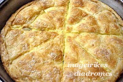 - Χαράζουμε την πίτα μας ,βάζουμε κομματάκια βιτάμ ,(το τρίτο μέρος το λίγο που κρατήσαμε) από πάνω και ρίχνουμε 1/2 ποτήρι νερό να πάει παντού μέσα στο ταψί. Πασπαλίζουμε με σουσάμι και ψήνουμε στους 170 βαθμούς 35-40 λεπτά η έως ότου ροδίσει η πίτα μας.