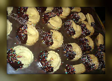 - Ζεσταίνουμε την κουβερτούρα και βουτάμε μόνον τις άκρες από τα μπισκοτάκια