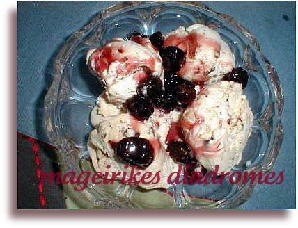- Βάζουμε το μίγμα στην παγωτομηχανή για 20 λεπτά, να παγώσει και σερβίρουμε αμέσως ή το βάζουμε σε δοχείο και στην κατάψυξη