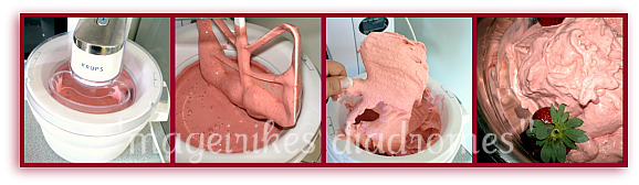 Μπορεί να γίνει και χωρίς παγωτομηχανή, με το γνωστό τρόπο του ανακατέματος ανά 1 με 2 ώρες 2-3 φορές. Το βάζω σε μια μπασίνα και στην κατάψυξη.