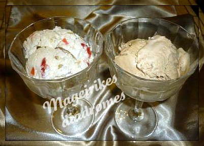 - Το χωρίζουμε και προσθέτουμε στο μισό φρουί γλασσέ ψιλοκομμένα και στο άλλο το νέσκαφε διαλυμένο σε μια κουταλιά νερό.