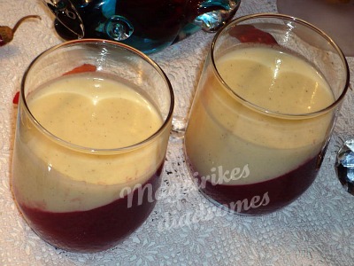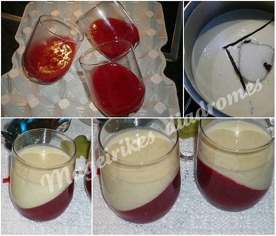 - Ριχνουμε την κρεμα μεσα στα ποτήρια με το ζελέ . Βαζουμε στο στο ψυγείο 4 ώρες.