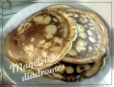 - Σε ένα μικρό τηγανάκι,ελαφρώς βουτυρωμένο,ρίχνουμε 2 κσ από το μείγμα.Αφήνουμε να ψηθεί για 1-2 λεπτά ή μέχρι να γίνουν τρυπίτσες στο πάνω μέρος της ζύμης.Γυρίζουμε από την άλλη πλευρά και ψήνουμε μέχρι να πάρει χρώμα.