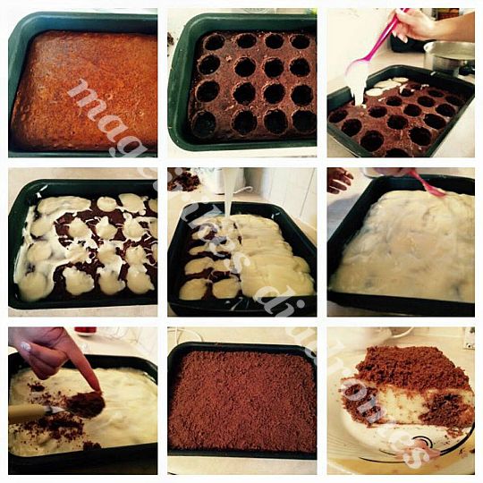 Δείτε στις φωτό τις τρύπες που ανοίγω, γεμίζω με κρέμα, την υπόλοιπη κρέμα από πάνω.