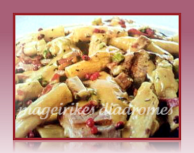 Βράζουμε τις πένες χωρίς αλάτι, γιατί το σύγκλινο είναι αρκετά αλμυρό και τα ανακατεύουμε με τη σάλτσα