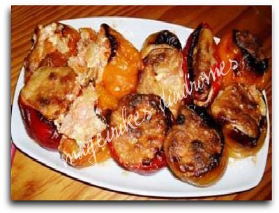 Ψήνουμε τις πιπεριές στους 180 βαθμούς 1 1/2 ώρα.
