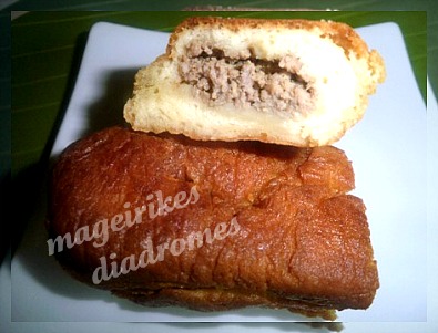 - Τα ανοιγουμε φυλαρακια και βαζουμε γεμιση της αρεσκειας μας. Κιμα , πατατα,λουκανικο κλπ.