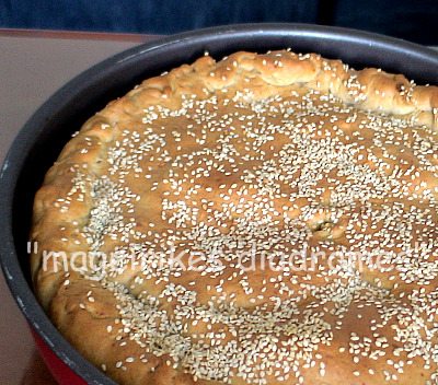 - Αλείφω με λίγο λάδι και ρίχνω σουσάμι.
