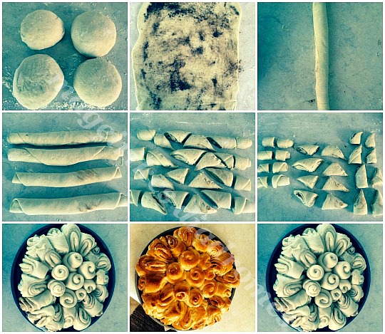 - Βάζουμε σε ταψί στη μεση τα ακριανά κομμάτια και τα υπόλοιπα γύρο γύρο σαν πέταλα λουλουδιών.