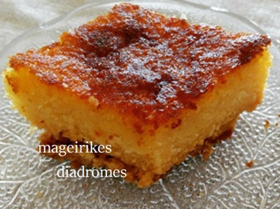 - Μόλις το βγάλουμε από το φούρνο, όπως είναι καυτό το γλυκό το χαράζουμε με μαχαίρι σε μπακλαβαδωτά κομμάτια και το περιχύνουμε προσεκτικά με κουτάλα με το καυτό σιρόπι.