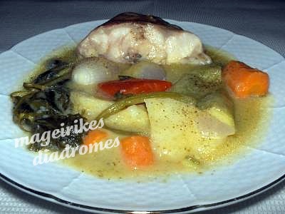 - Τα βράζουμε μέχρι να μαλακώσουνΤοποθετούμε το ψάρι που το εχουμε αλατισει λιγη ώρα πριν, ολόκληρο η κομμενο σε κομμάτια επανω απο τα λαχανικά.