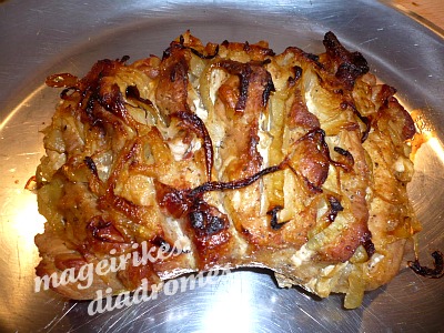- πολλες ροδελες κρεμμυδιών και κανουμε παλι το ιδιο εναλλάξ στο γέμισμα.