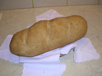9. Αφαιρούμε τη σακούλα, και κάνουμε δύο με τρεις διαγώνιες χαρακιές στο ψωμί (αν θέλουμε ψεκάζουμε με λίγο νεράκι την επιφάνεια, πασπαλίζουμε σουσάμι και πατάμε ελαφρά να κολλήσει).