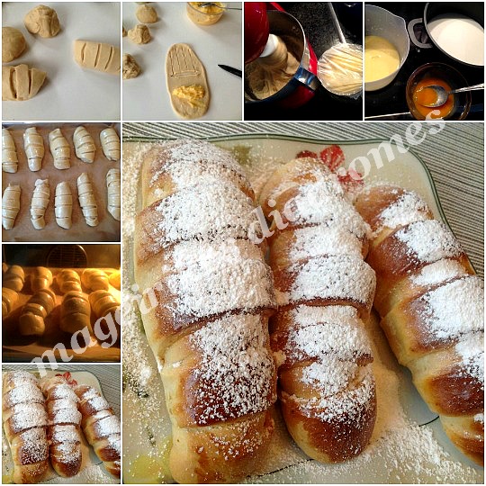 Γρήγορη ζύμη για γλυκά και μπουρέκια, που δεν χρειάζεται να την αφήσουμε να φουσκώσει. Αν θελουμε γεμίζουμε με κρέμα σοκολάτας, αντί βανίλιας ή με μερέντα.