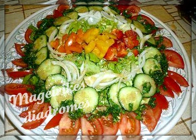 - Βάζουμε στο κέντρο της πιατέλας το μαρούλι ,και αραδιάζουμε γύρω -γύρω και επάνω τα υπόλοιπα λαχανικά σύμφωνα με το γούστο μας.