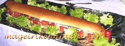- Παίρνουμε μία φρέσκια μπακέτα και τη χαράζουμε μέχρι τη μέση.