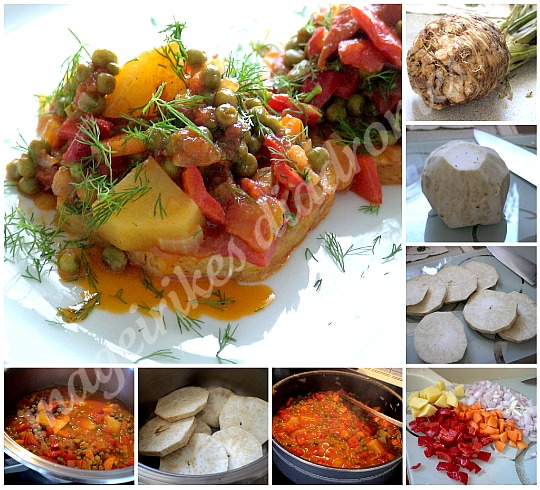 - Καθαρίζουμε τις σελινόριζες και τις χωρίζουμε σε φέτες.