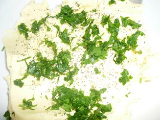 - Σε ένα μπολ αδειάζουμε το μίγμα του βουτύρου και ρίχνουμε το μαϊντανό και τη ρίγανη τόση όση να καλύπτει ένα μεγάλο μέρος της επιφάνειας του βουτύρου