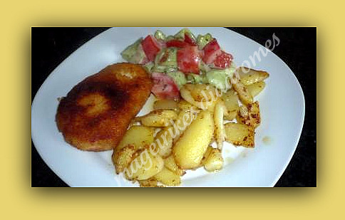 Σερβίρουμε με σαλάτα και πατάτες τηγανητές και με μια ροδέλα λεμόνι