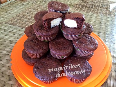 Είναι πολύ νόστιμα κεκάκια και κρύβουν μια νοστιμιά έκπληξη στο κέντρο τους! Δοκιμάστε τα!