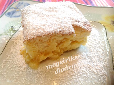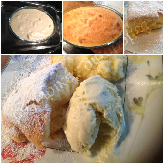 - Το κόλπο εδώ, μετα οταν ψηθεί , ειναι οτι στον πάτο ειναι μια κρέμα λεμονιού και από πάνω ειναι το παντεσπάνι !