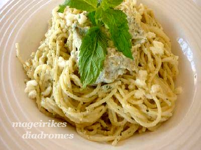 - Σε βαθιά κατσαρόλα με άφθονο αλατισμένο νερό βράζουμε το σπαγγέτι. Το σουρώνουμε και ρίχνουμε 5-6 κουταλιές σάλτσα ,ανακατεύουμε και σερβίρουμε, στολίζοντας με μια κορφούλα δυόσμου.
