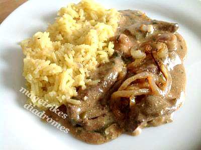 - Σερβιρουμε το Συκωτι και απο πανω τα τηγανιτά κρεμμύδια.
