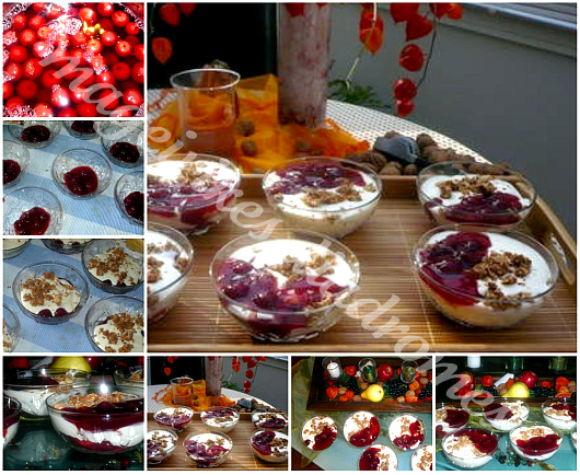 Βάζουμε σε κάθε ποτηράκι 2 κ.σ. από τα κεράσια.